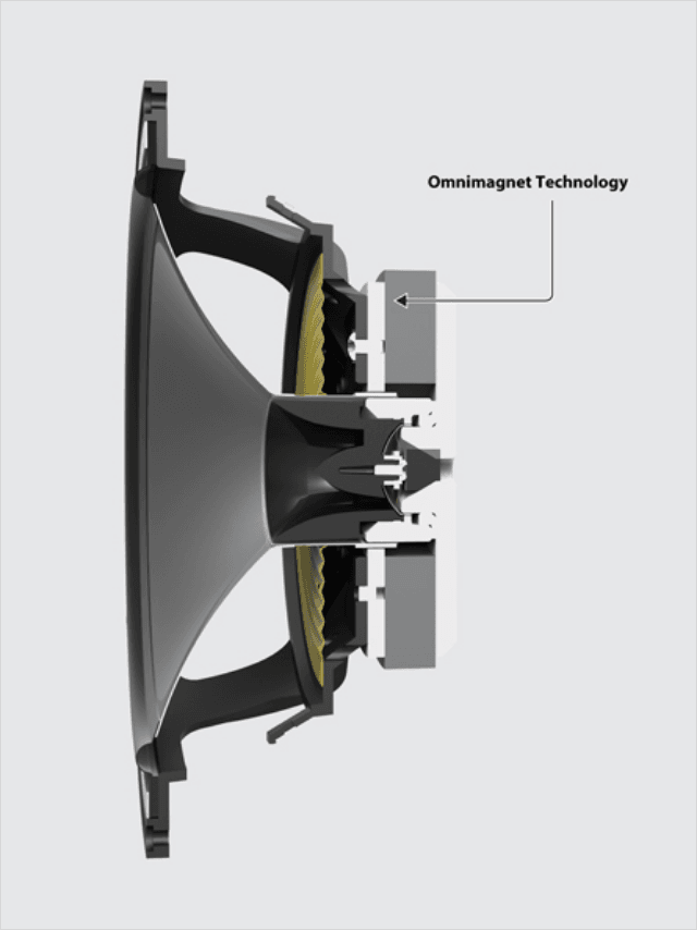 In a completely new interpretation of Tannoy's propriertary point-source drive unit design philosophy, the revolutionary Omnimagnet design makes use of a single shared magnet assembly to drive both the high frequency and low frequency voice coils, ensuring much closer physical alignment and improved coherence.