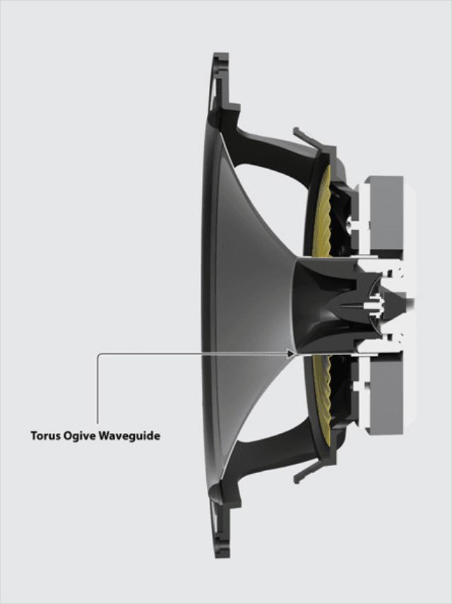 The Torus Ogive waveguide is a precision engineered waveguide assembly that provides wider HF directivity in the latest generation Dual Concentric.